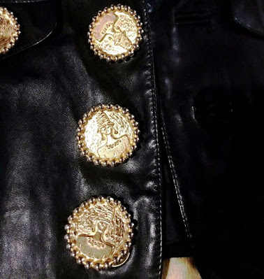 The button I have, and am showing today once lived on what once was a $1,790 leather jacket designed by Kahng in the 1990s.