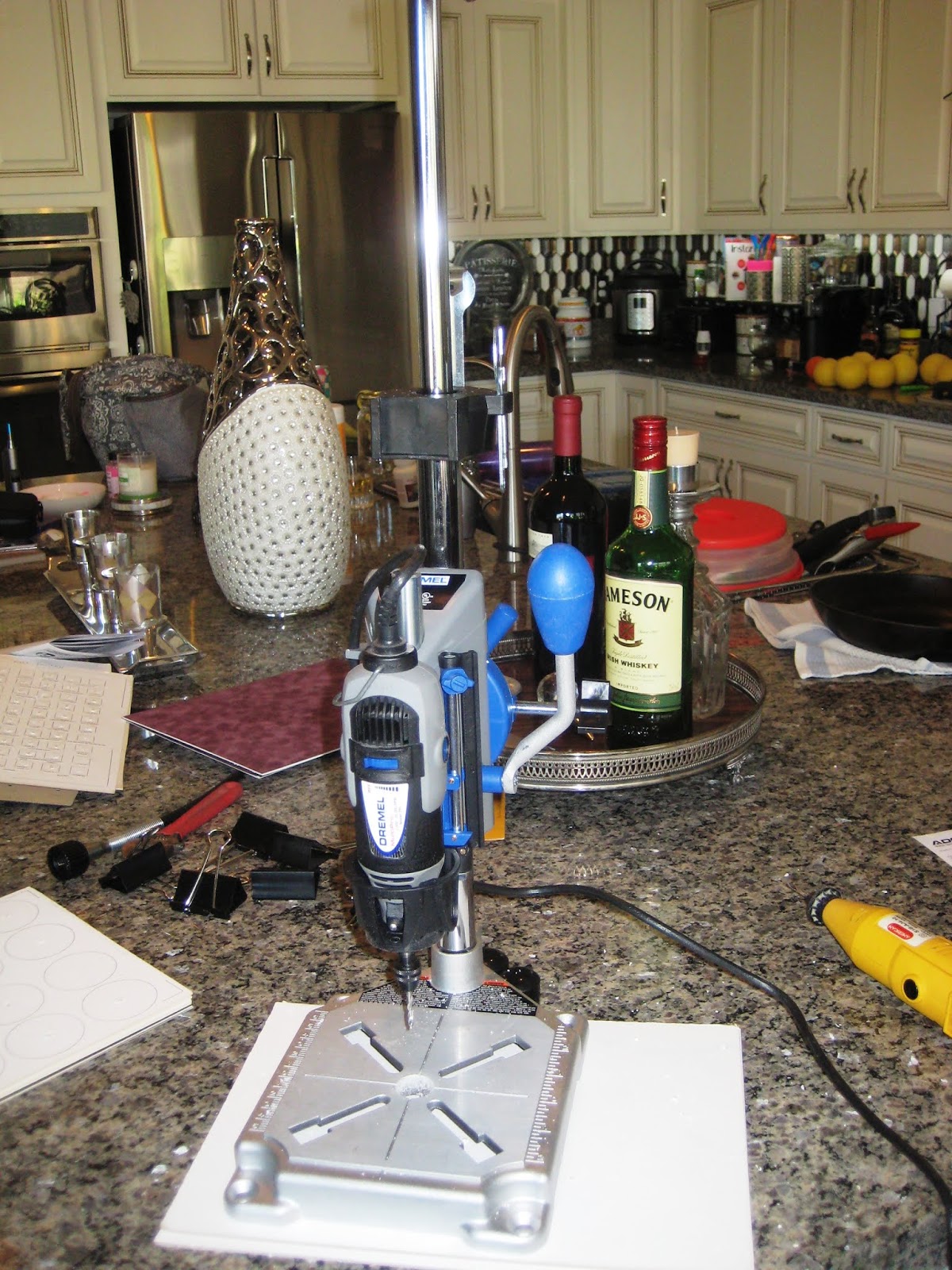 I already had a DREMEL MULTIPRO with adjustable speed, all the attachments and a FLEX SHAFT. It was a birthday gift from Mr. FBR years ago. I used it all the time, even holding on to it, and trying to drill cards with it, it worked for that... sort of (and was dangerous as heck). Then, THIS arrived: